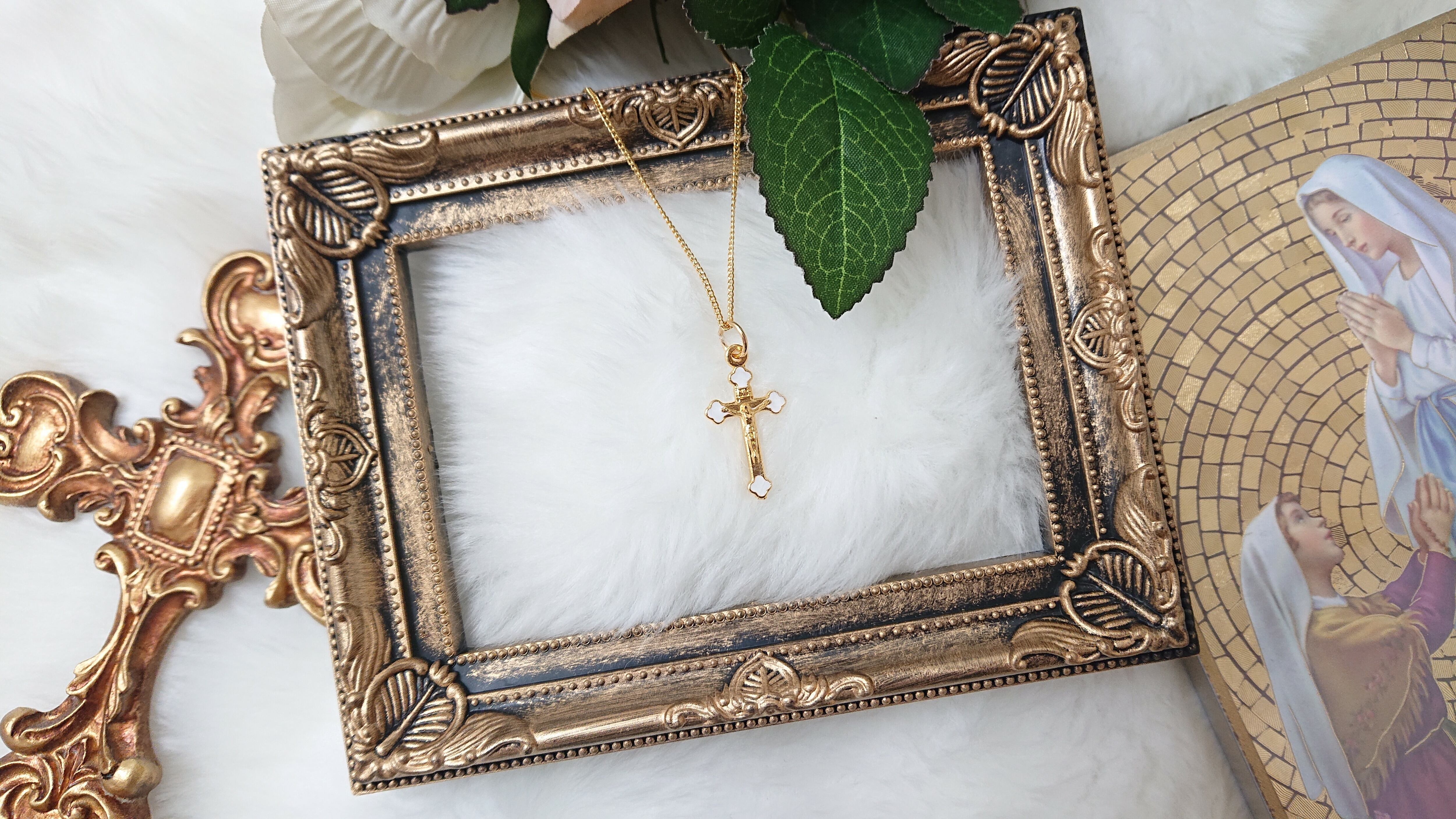 小さな幸せや運を引き寄せるネックレスです♡ホワイトのクロスのシンプルなネックレス。