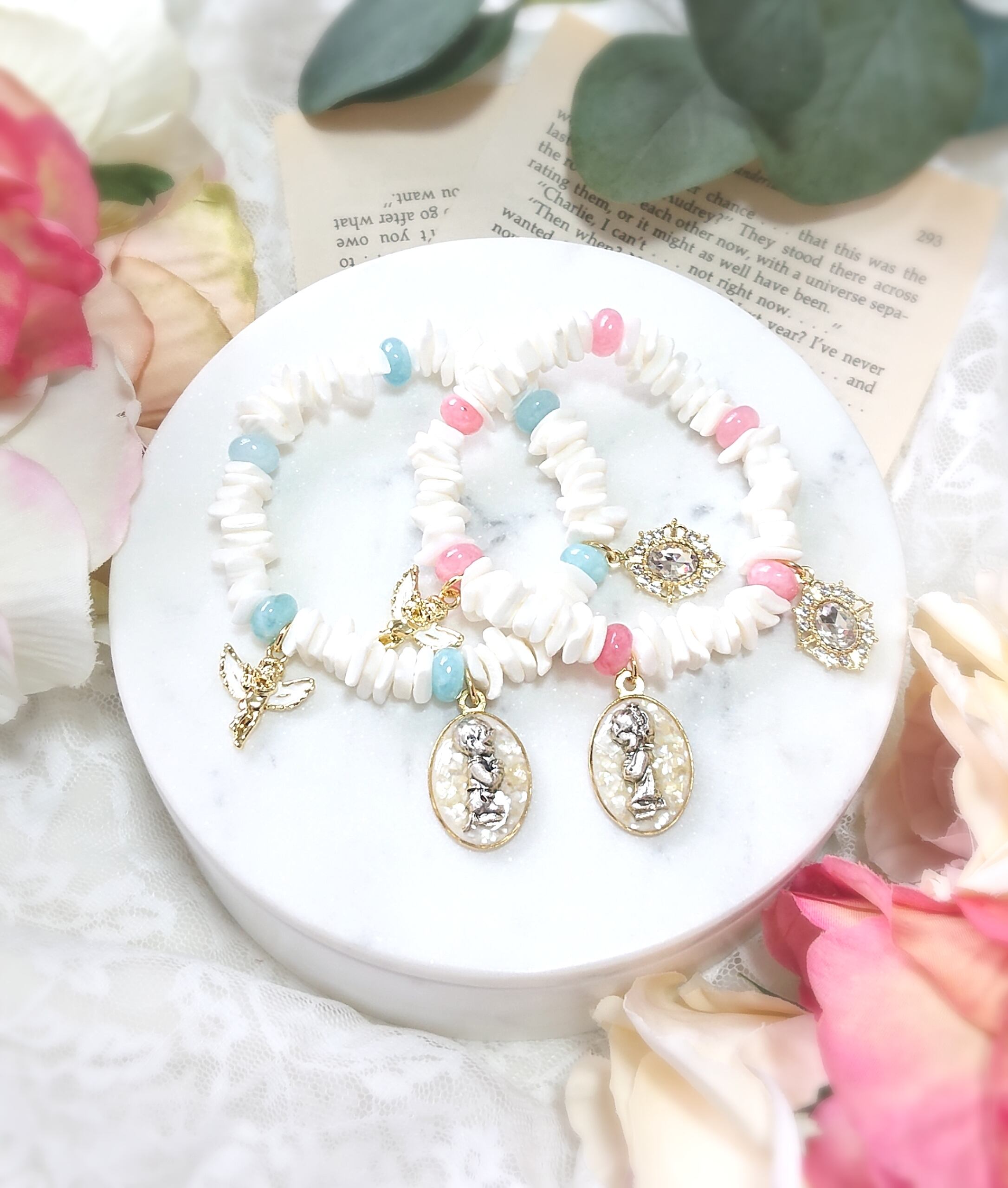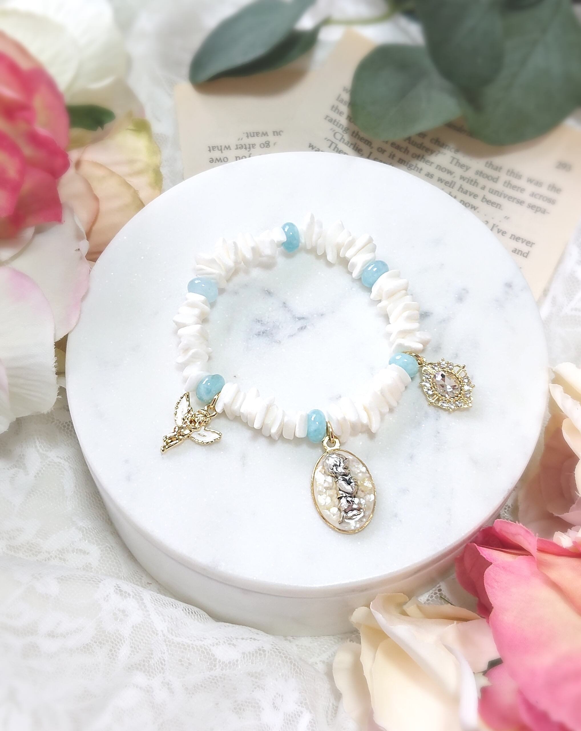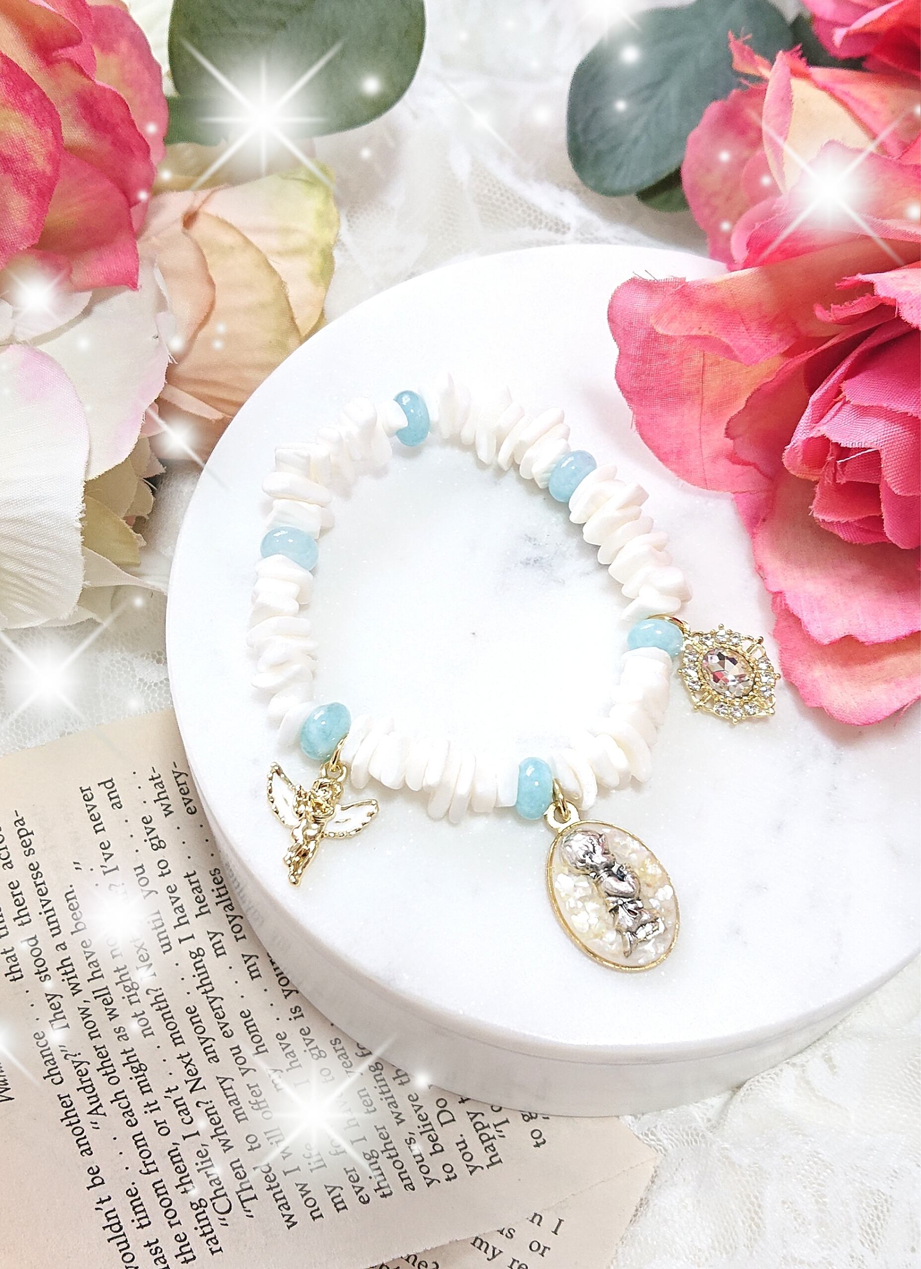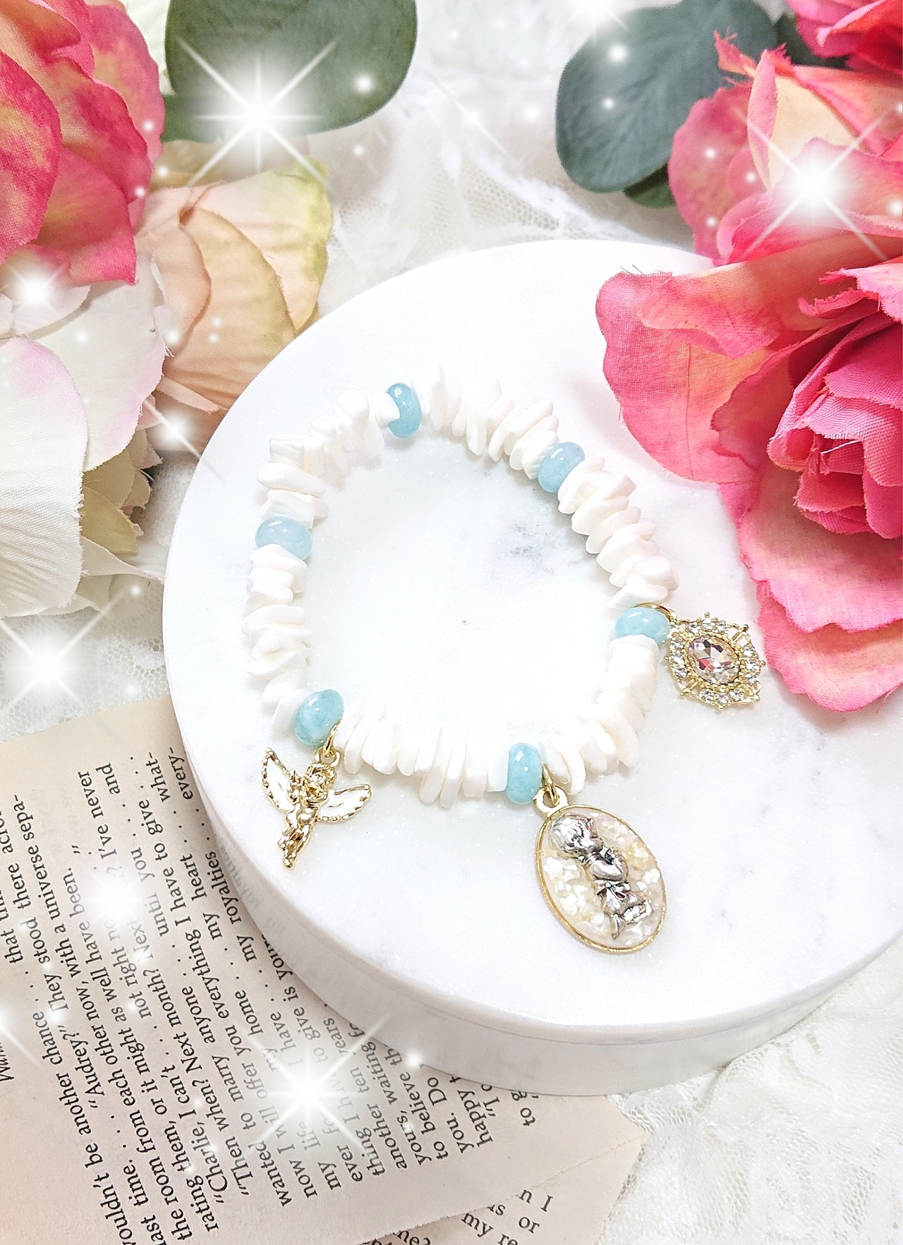 〘 愛と癒し〙祈る男の子♡シェル♡天然石 アンティークメダイ✳マーメイドブレスレット