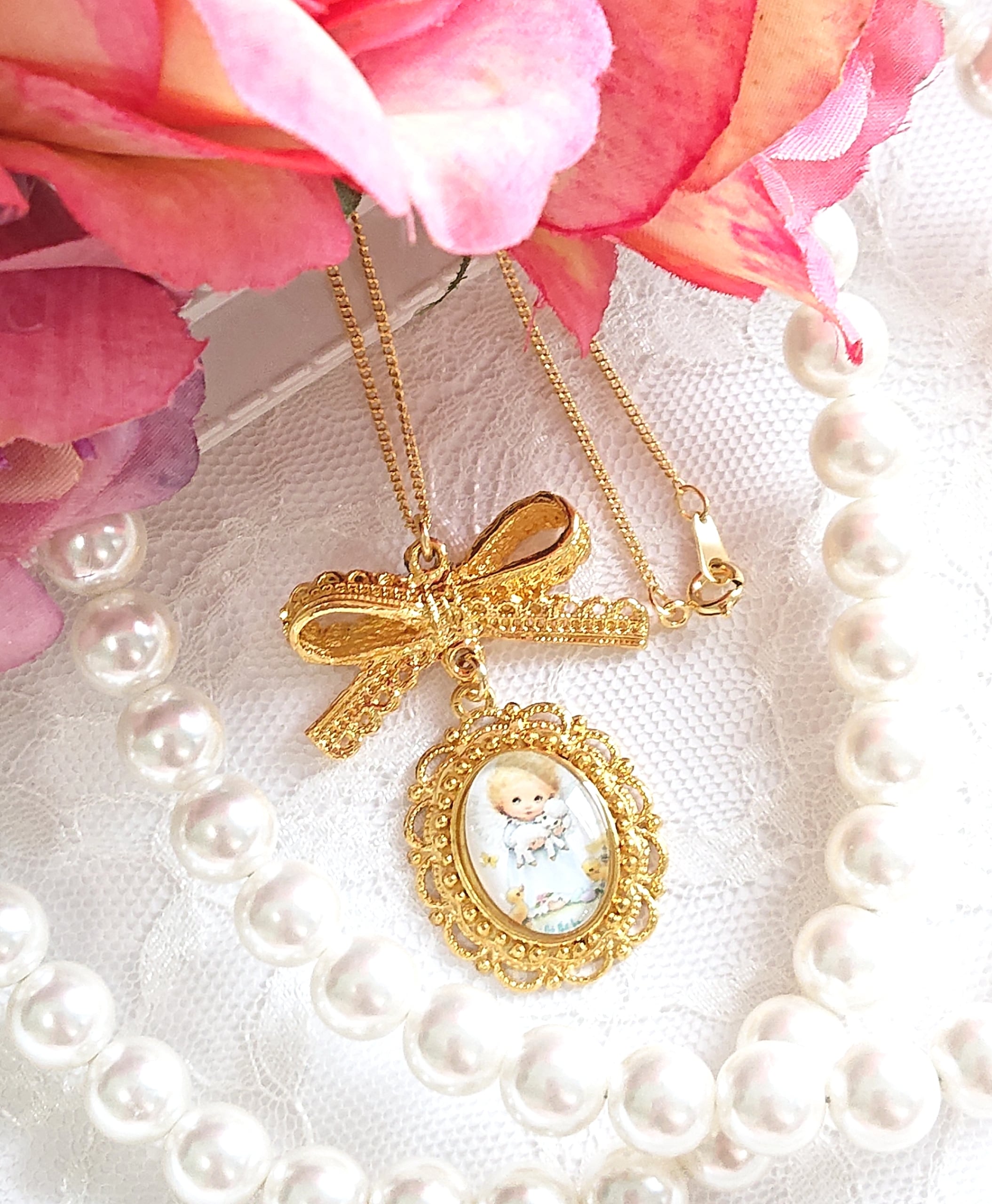 エンジェル♡アンティーク リボン ネックレス ︎/メダイ 天使