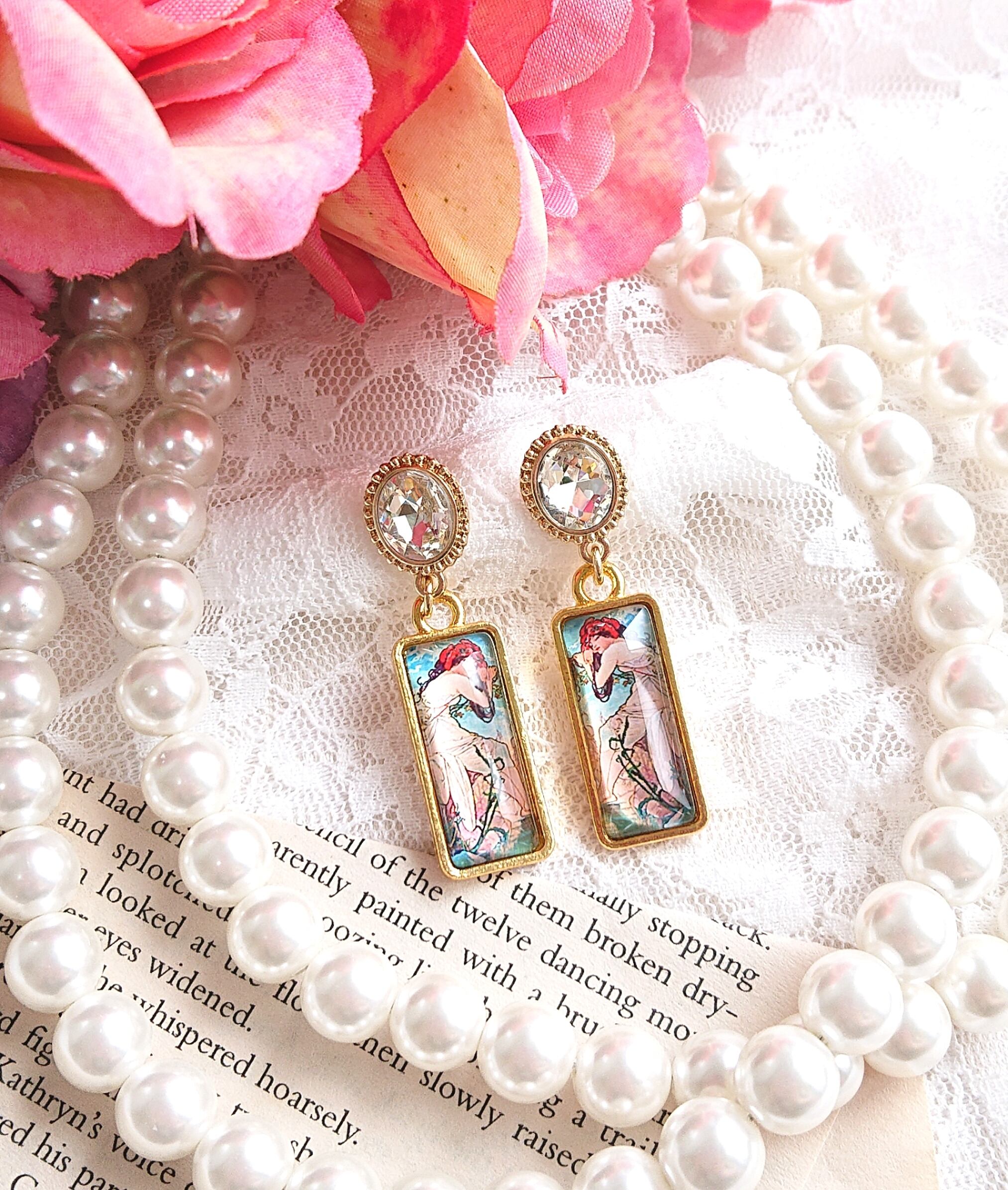 ︎︎︎︎︎︎☑︎ アンティーク調のミュシャのポスター画ピアス✩.*˚