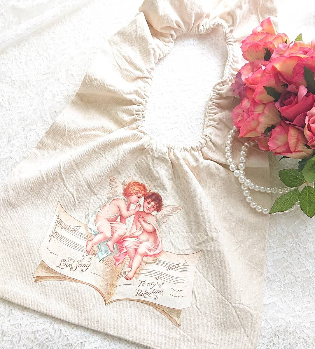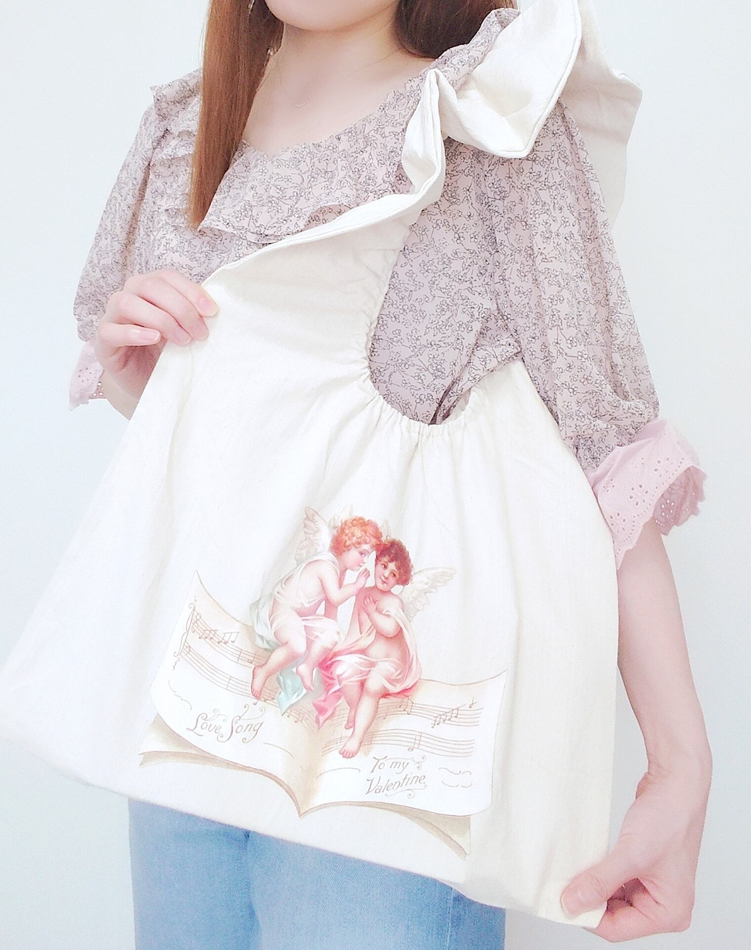 ︎︎︎︎︎︎☑︎天使のプリントが可愛いフリルトートバッグ。