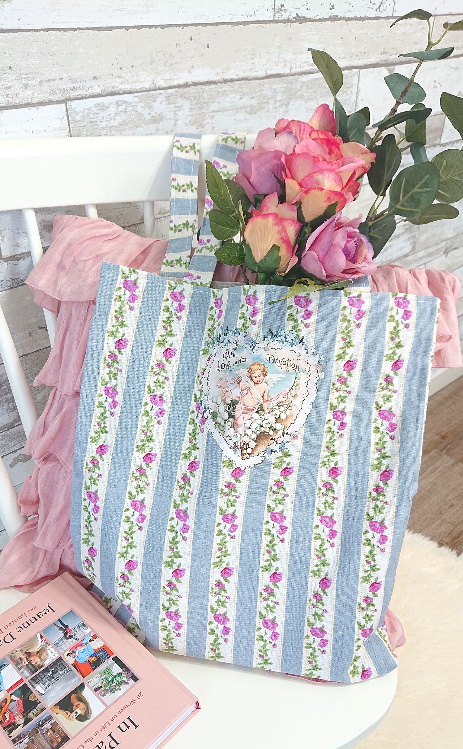 【オリジナル】エンジェル フラワー トートバッグ♡/天使 花柄 エコバッグ 韓国